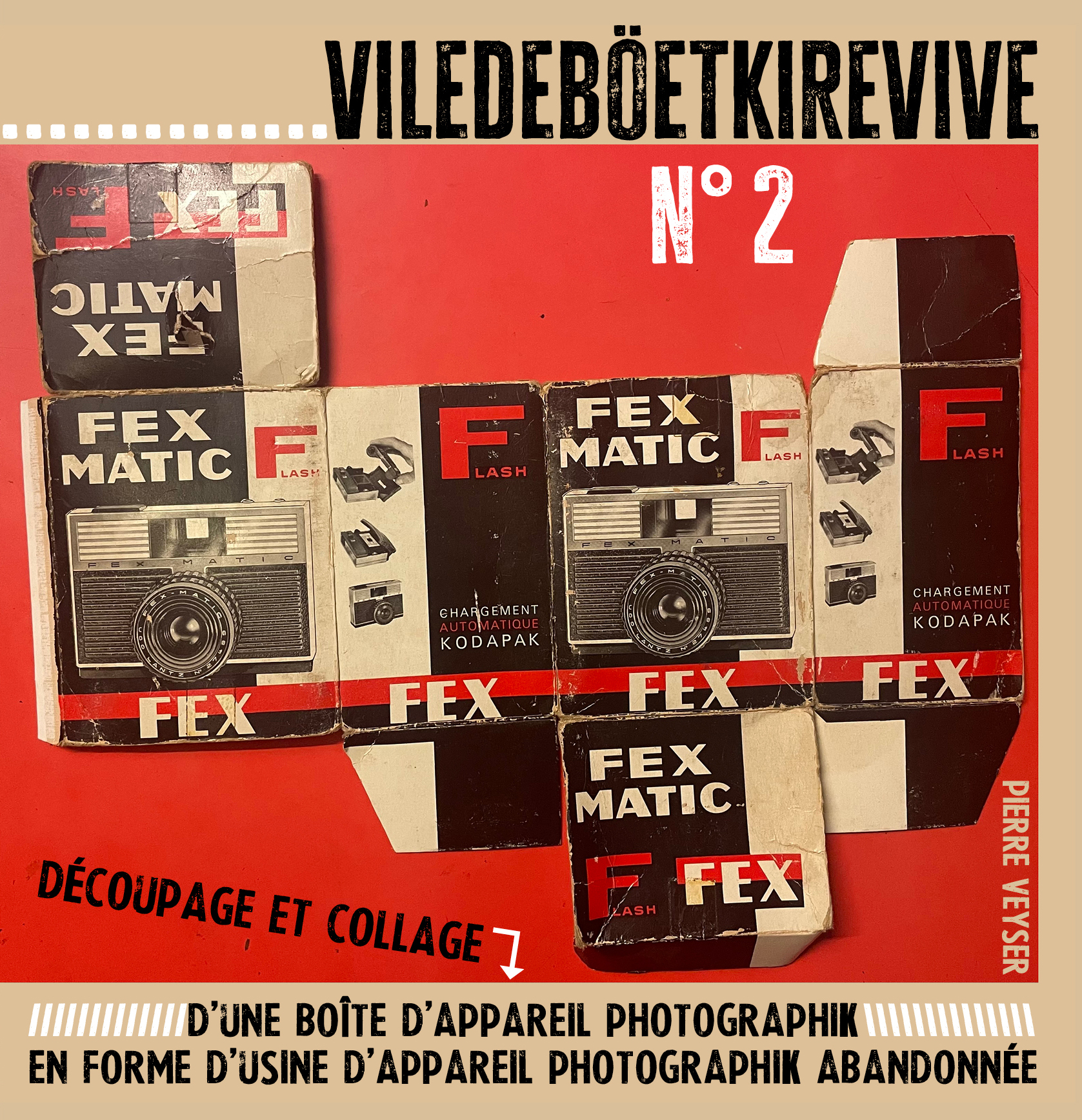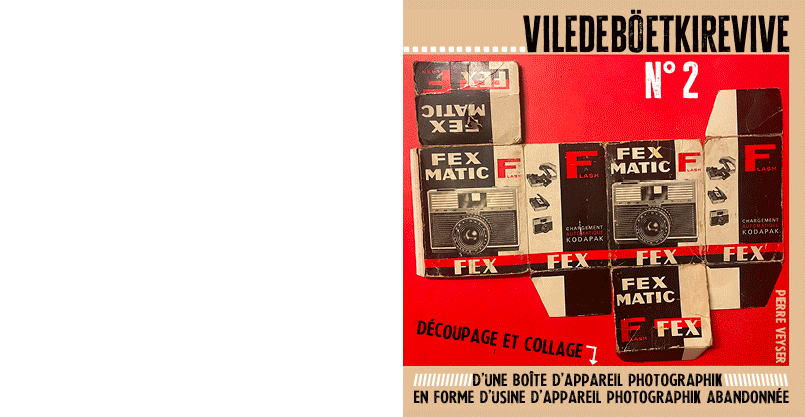 VILEDEBÖETKIREVIVE N°2 Pierre Veyser Découpage et collage d’une boîte d’appareil photographik en forme d’usine d’appareil photographik abandonnée 14,2 cm x 14,7 cm | 8 pages Impression laser les bras manuels 2022 © Grimaces éditions 2022 VILEDEBÖETKIREVIVE N°2 | Pierre Veyser(frais d’envoi 2,00 € inclus)4,50 €