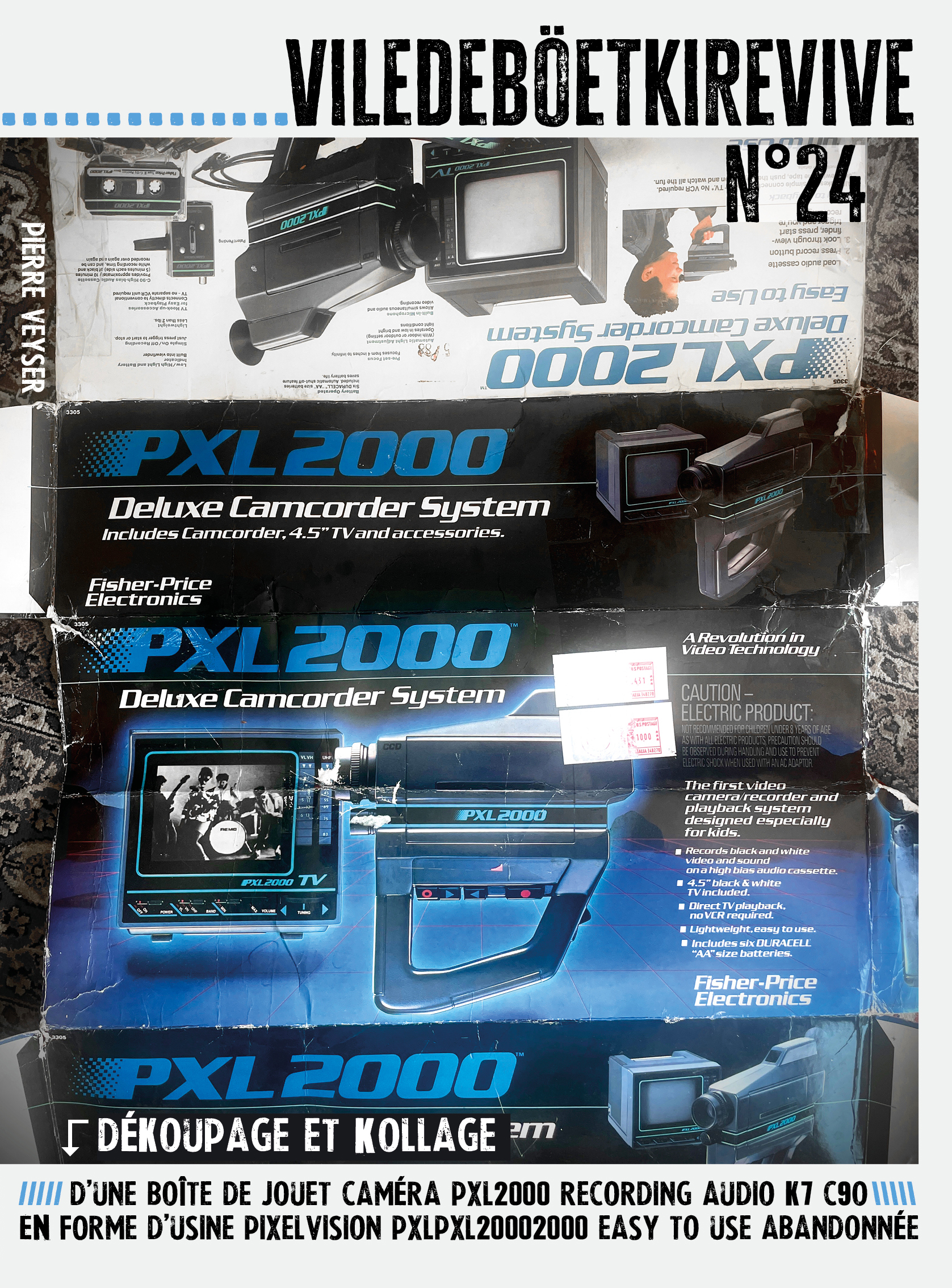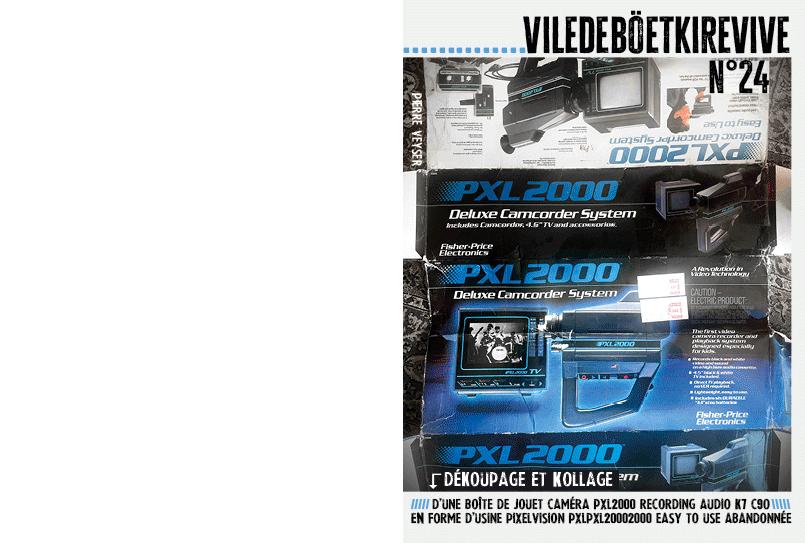 Dékoupage et kollage d’une boîte de jouet caméra pxl2000 recording audio k7 c90 en forme d’usine pixelvision pxlpxl20002000 easy to use abandonnée