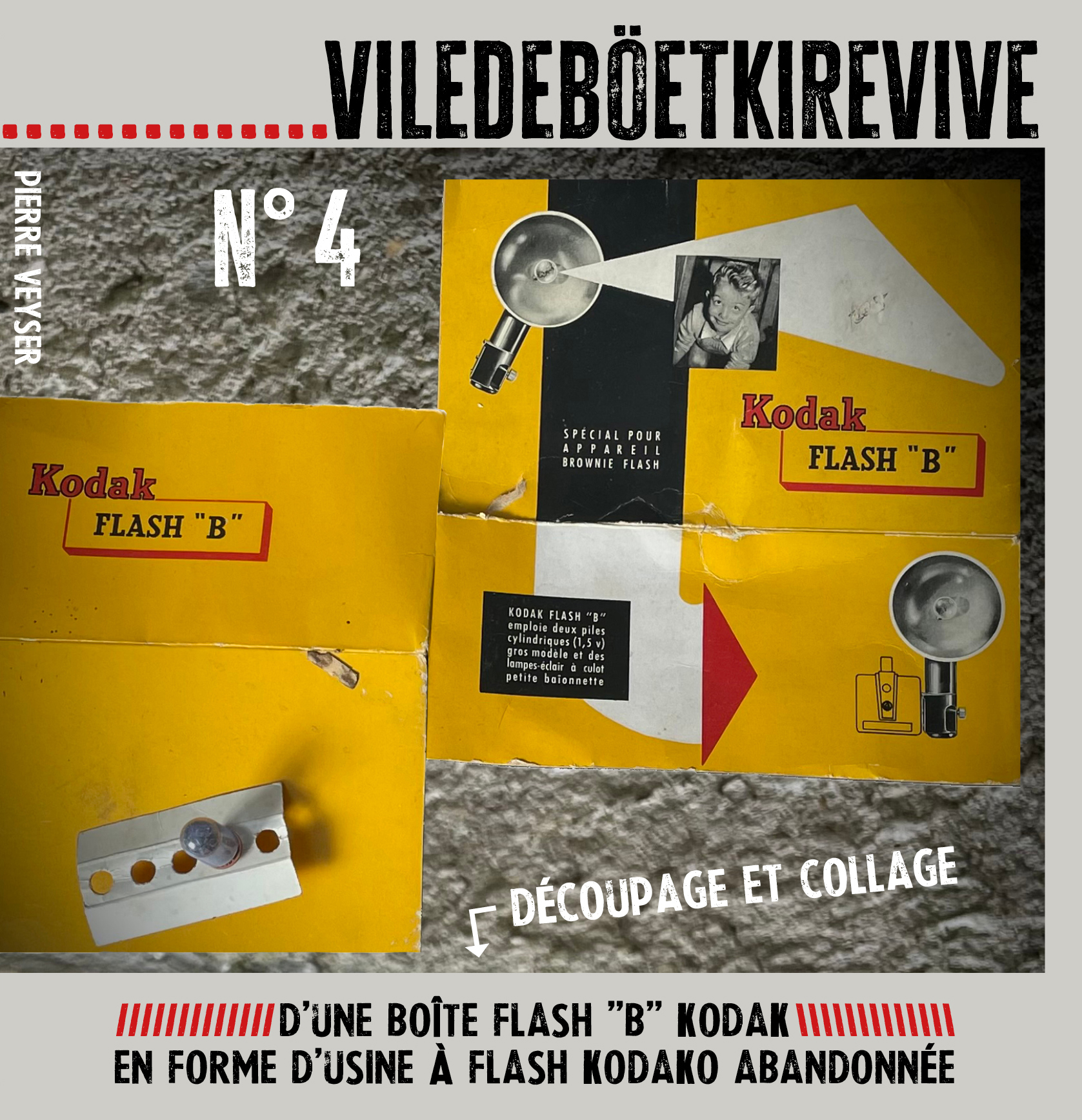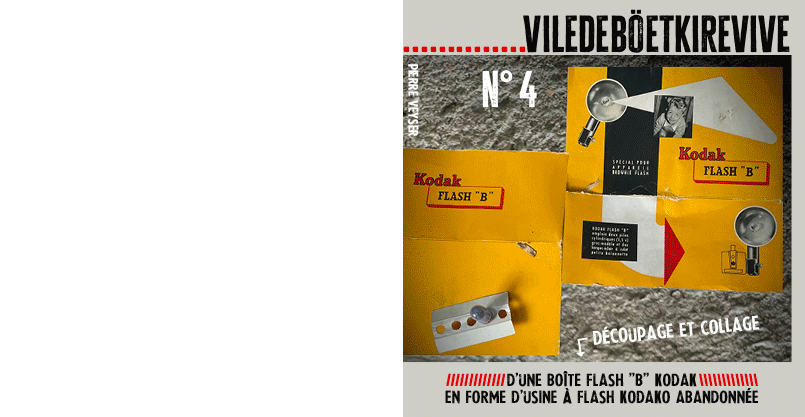 Découpage et collage d’une boîte flash « B » Kodak en forme d’usine à flash Kodako abandonnée